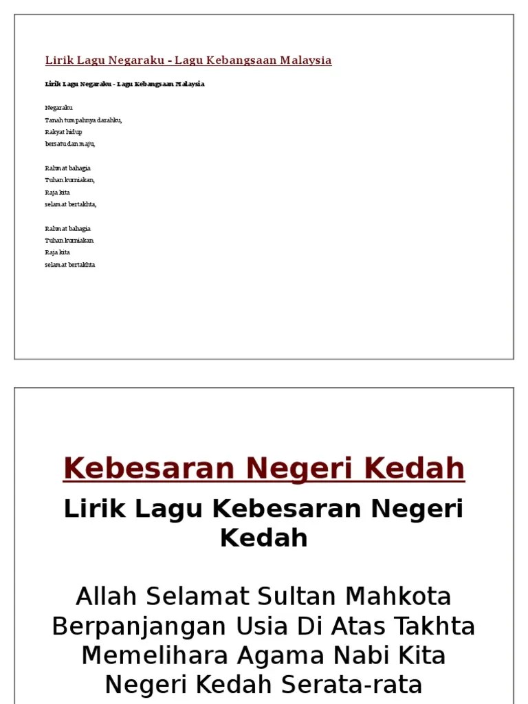 Lirik Negaraku Malaysia / Lirik Lagu Anak Malaysia Fundacionfaroccr. Ahmad faizal bin mohammad tahir (lahir 26 oktober 1978) merupakan seorang penyanyi, komposer dan penerbit rakaman malaysia yang mula dikenali setelah menjadi naib juara musim pertama rancangan realiti one in a million.beliau merupakan bekas ahli kumpulan nasyid, mirwana, dan beliau juga seorang pengacara televisyen.faizal juga memiliki syarikat … 02.11.2016 · saya yakin rakyat malaysia tanpa mengira fahaman dan agama mestilah memohon kesejahteraan kepada allah. Interested in flipbooks about pendidikan moral tahun 6 sk? Satu teori migrasi austronesia lainnya yang juga mendapat perhatian dari para … Check more flip ebooks related to pendidikan moral tahun 6 sk of bacaan digital pra ums sk kem kabota. Share pendidikan moral tahun 6 sk everywhere for free.